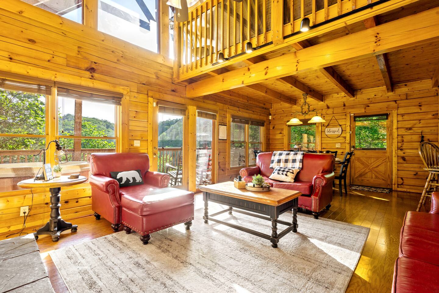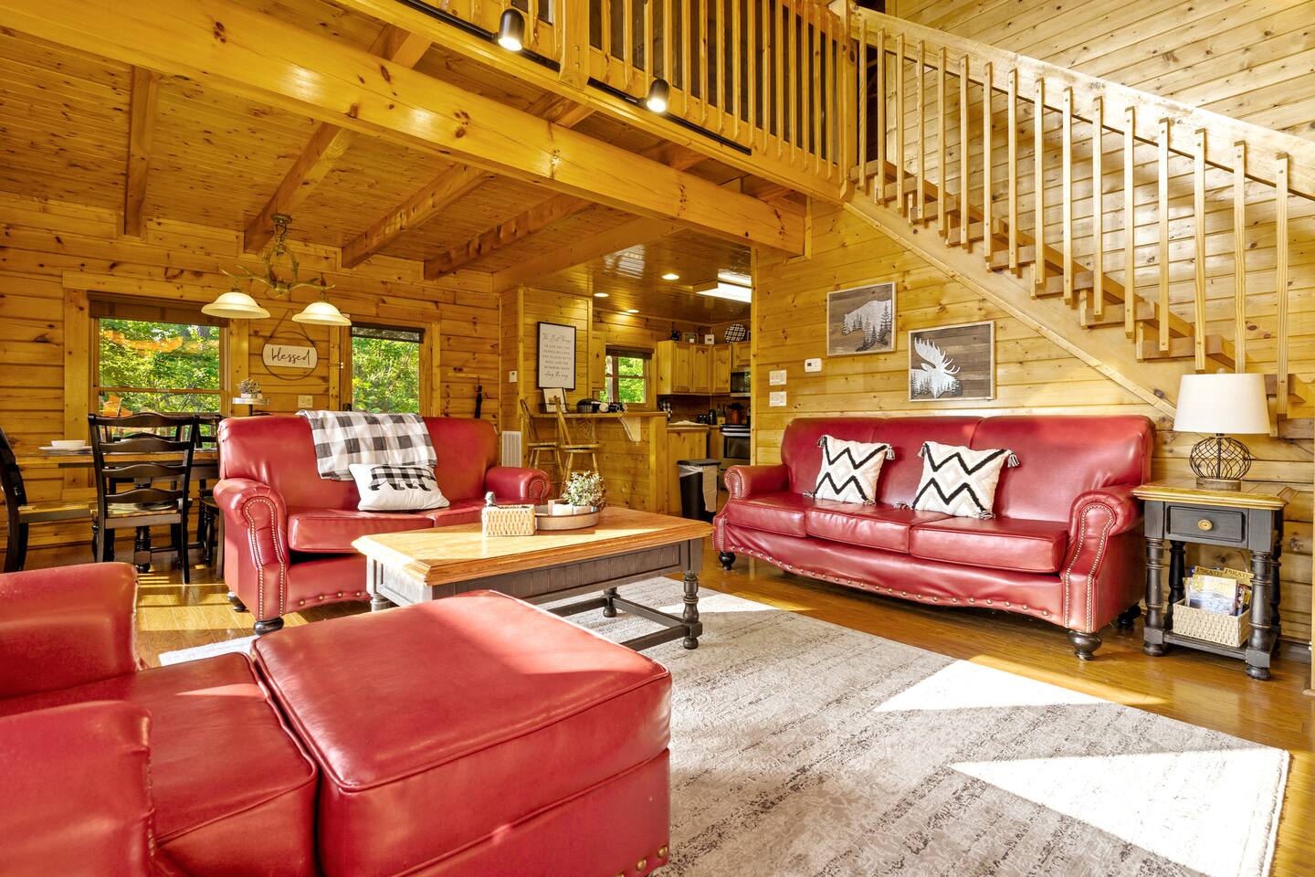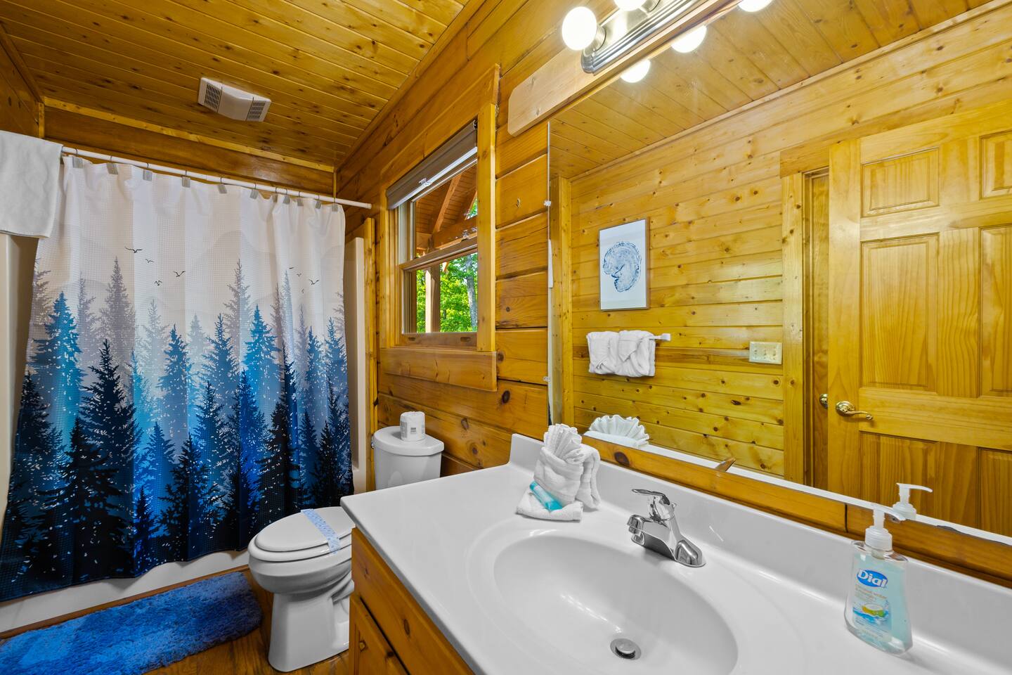 • A starter supply of essentials is provided, including paper towels, dish soap, laundry tabs, trash bags, and basic soaps. Guests may need to purchase additional supplies for longer stays. • All linens, and bath towels are provided for your use. • Each bathroom is equipped with a hair dryer. An iron and ironing board are also available. • High-speed Spectrum Wi-Fi is available throughout the cabin. • For your security, an exterior camera is located on the property, facing the driveway, and the side door. There are no cameras inside the cabin. • It is common to see wildlife such as bears, raccoons, and other animals. Please do not leave food out and secure all trash in the provided animal-proof containers. • Access to the main level of the cabin requires climbing four steps from the driveway. • Guests must provide a valid photo ID for verification prior to check-in. • By booking, you acknowledge that the owners are not responsible for any accidents, injuries, or loss of personal belongings and you assume all risks associated with the use of the property and its amenities.